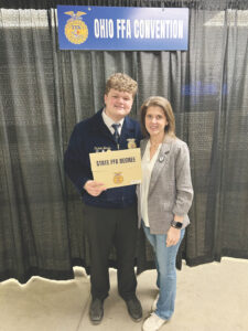 - (Photo provided by Parker Burris) Parker Burris poses for a photo with his mom Malisa Whiteley after earning his Ohio FFA State Degree at the 2025 Ohio FFA State Convention May 2, 2025.