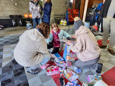 - (Photo by Gwen Sour) From left, Amber Blasczyk, Madelyn Blasczyk and Kim Hall reorganize a bag of classroom supplies during Hall Financial Advisors Giving Foundation’s annual Teacher’s Closet giveaway on Saturday.