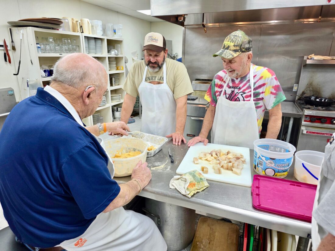 “Everybody brings stuff in, and then we fix it up,” Wainwright said. “All the guys in the kitchen helped hunt – everybody in this local farming area hunts something or they fish.”
