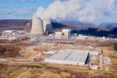 Fog from the Ohio River floats below the Parkersburg-Belpre Bridge as a truck makes its way across the river Wednesday morning.