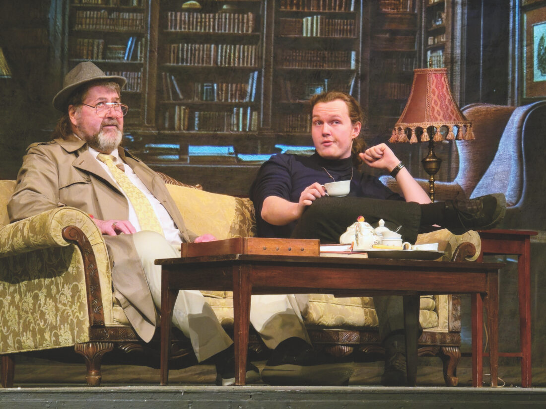 (Photo Provided) “Dirk Gently’s Holistic Detective Agency” opens at 7:30 p.m. Friday at the Mid-at the Mid-Ohio Valley Players Theatre with, from left, Nicholas Rake as Dirk Gently and Rod Newhart as Urban “Reg” Chronotis. Tickets are $13.
