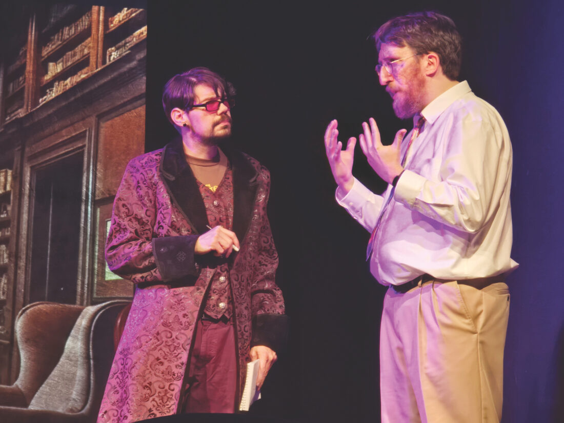 (Photo Provided) Nicholas Rake as Dirk Gently and Adam Wallace as Michael Wenton-Weakes in “Dirk Gently’s Holistic Detective Agency.” The show opens at 7:30 p.m. Friday at the Mid-at the Mid-Ohio Valley Players Theatre in Marietta.