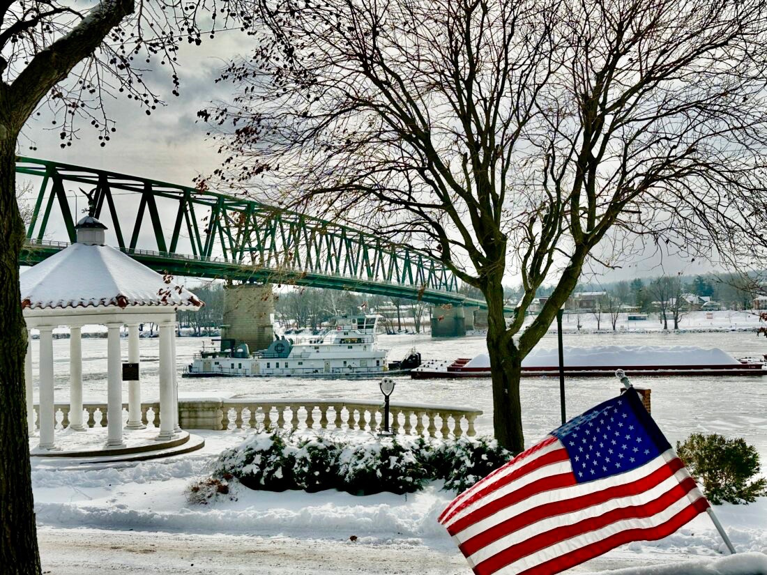 - (File Photo) The Linda Reed passes Levee Park Jan. 28 after being stuck in ice the previous morning.