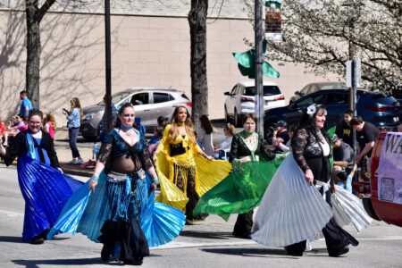 (Photo by Amber Phipps) Members of the Wayward Dancers stroll down Market Street during the 16th annual Mid-Ohio Valley Easter Parade Saturday.