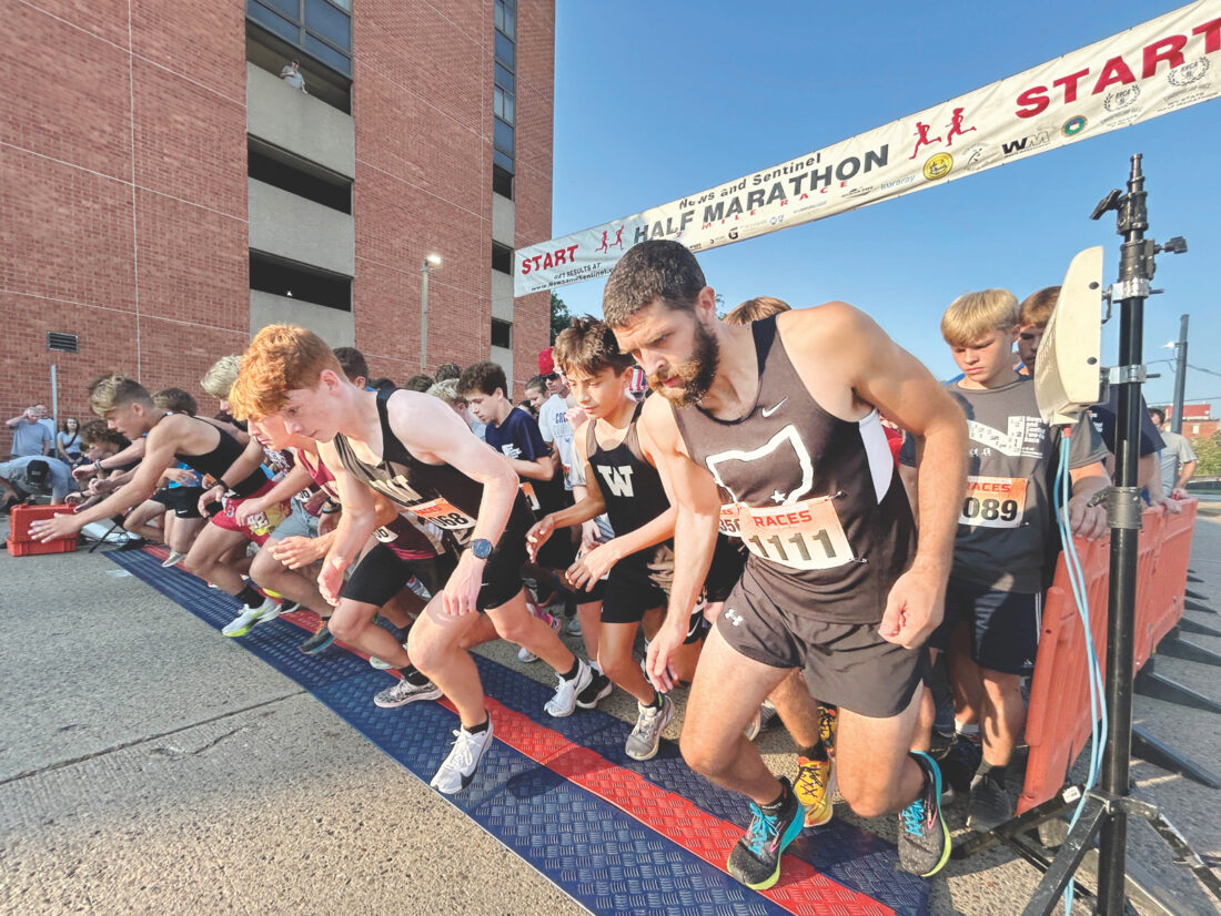 - (Photo by Art Smith) Runners leave the starting line at the 2025 News and Sentinel Half Marathon. Runners at this year’s race on Aug. 15 will be the first to use the new race course.