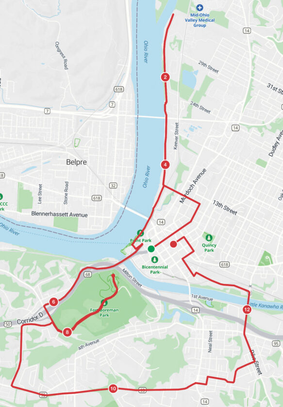 It will stay on the road all the way to Division Street, where it will cross into a neighborhood before connecting with Pike Street a few blocks later. It will then cross the Little Kanawha River on the East Street Bridge before making a left turn onto Depot Street. The race will travel on the street to Green Street where it will turn left and connect to Eighth Street. Runners will turn left onto Market Street and head for the traditional finish line at Sixth and Market streets.