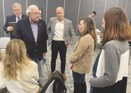 - (Photo by Brett Dunlap) Wood County Commissioner Robert Tebay speaks with friends, family and supporters Thursday as Tebay is retiring from the commission with Thursday being his last day in office.