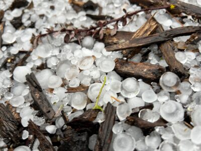 (Photo by Art Smith) A close-up of hail from the storm Wednesday night.