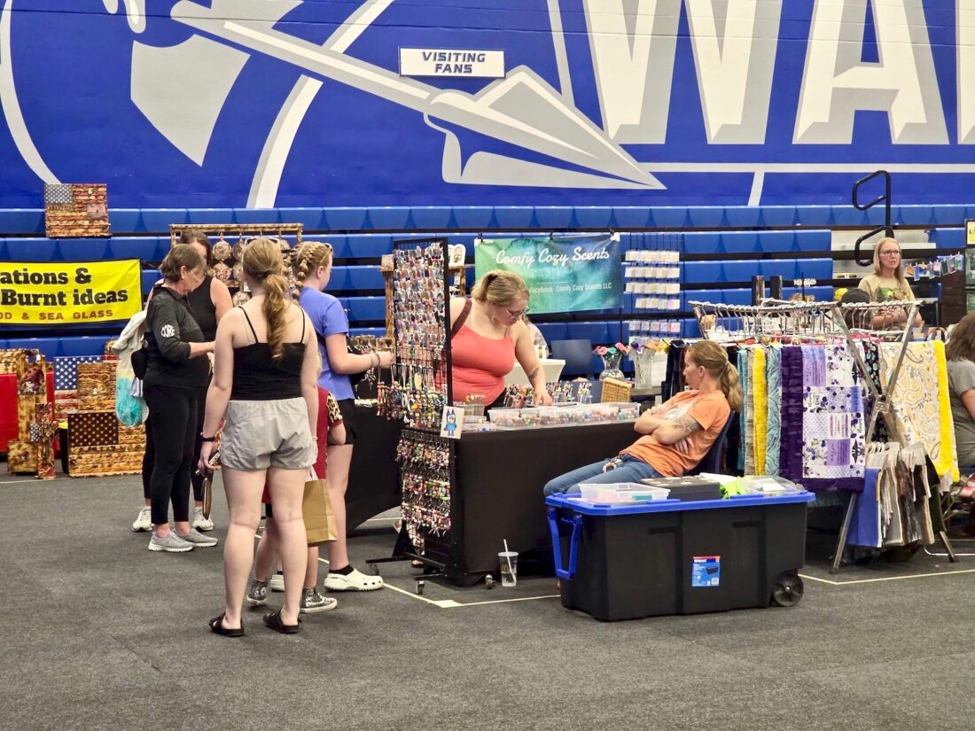 The event, part of a tradition that spans more than four decades of band booster fundraisers, featured a mix of handmade goods and commercial vendors, offering everything from crafts to household products and books. Unlike the group’s long-running fall fair, which focuses primarily on handmade items, the spring event blends both crafters and direct-sale vendors.