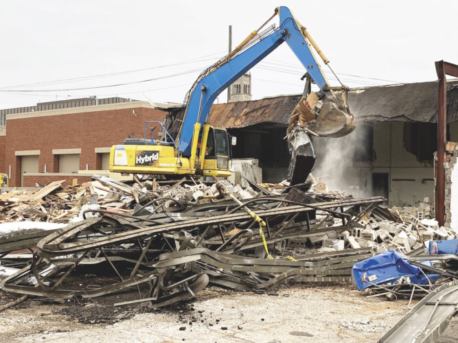 PARKERSBURG — Demolition of the former Wood County Sheriff’s Office and county Maintenance Department building at the corner of Second and Avery streets is underway.