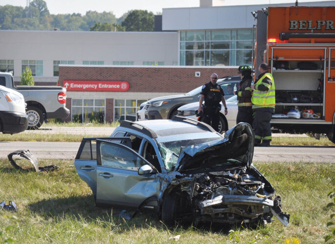 BELPRE — Traffic was slowed on Ohio 7 at Farson Street Thursday afternoon after a three-vehicle accident that ended the pursuit of a reportedly stolen car.