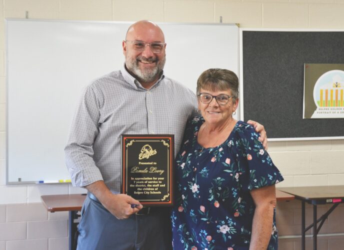 BELPRE — The Belpre City Schools Board of Education recognized Pam Lowry Thursday night for her retirement after seven years of service in the kitchen at Belpre Elementary.