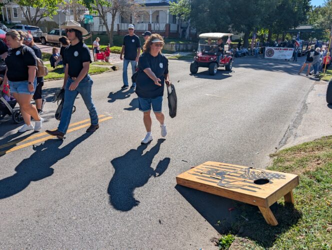 Rather than try to catch candy tossed by units heading up Front Street to the county fairgrounds, Waterford resident Crimson Gribble and her family offered a target – a cornhole ...