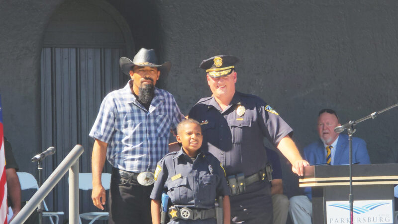 PARKERSBURG — Thirteen-year-old Devarjaye “DJ” Daniel was sworn in as an honorary member of the Parkersburg Police Department on Friday at City Park’s Bandshell, during a ceremony attended by uniformed officers from across West Virginia and community members.