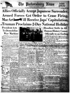 On Aug. 15. The Parkersburg News ran a rare four deck headline across the top of the front page.
