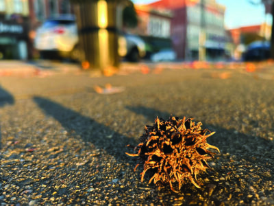 As the trees matured into lovely shade trees, the arborist was proven wrong. They produced spiked seed balls that are the downfall of the tree, and began dropping them on streets and sidewalks all over town.