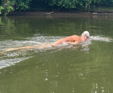 “I started doing this last year. Since I have no pool to train in, my lifting trainer Randy Gibbs said why don’t I come down to the river and swim. I said, ‘Are you serious?’ And here we are.”