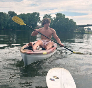 Warren’s Mason Francis practices in the Ohio River in preparation for his upcoming senior swim season. (Courtesy photo)
