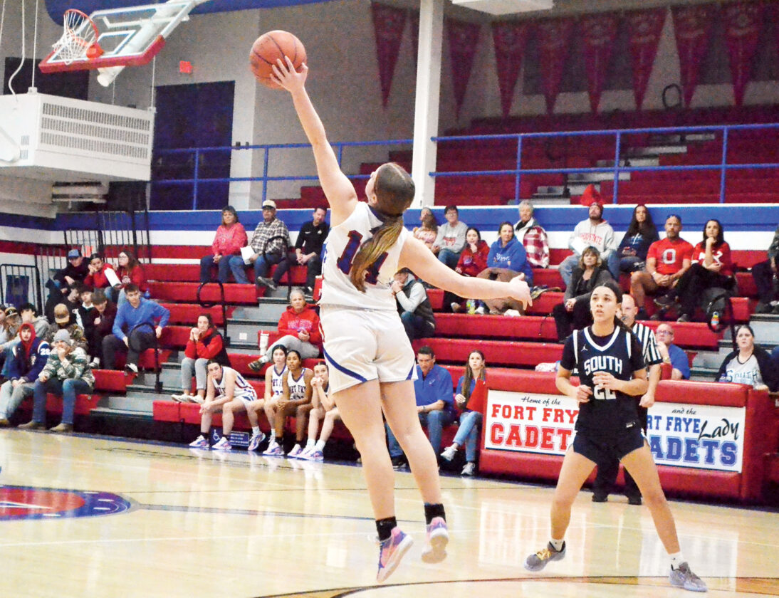 A two-pointer by Regan Shockey opened the final period but the Fort did them one better when sophomore Haven Shilling canned a 3-pointer to push the Cadet lead back to 16.