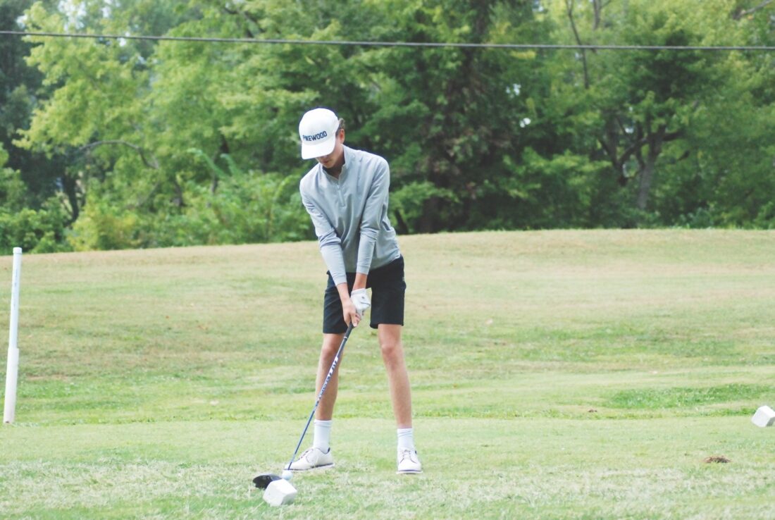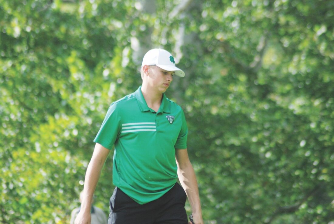 - Waterford’s Briceson Cline takes a moment between swings during a high school golf match earlier this season at Lakeside Golf Course. (Photo by Jay W. Bennett)