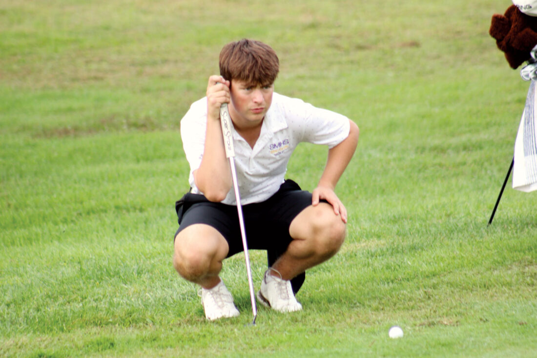 St. Marys senior Tripp Morrison studies an upcoming putt during the Class A, Region I Tournament, this past Monday at Mingo Bottom Golf Course. (Photo by Kerry Patrick)