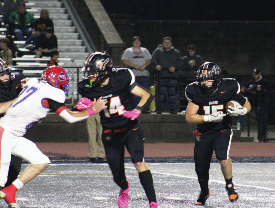 Hesson scored the first two touchdowns of the game on dives up the middle from five yards and again from two yards. Tyce Beardsley’s 38-yard touchdown run just before halftime extended the lead to 21-0 – one play following a defensive stop on a fourth-and-4 for the Tigers.