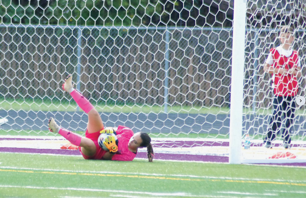 Braxton County goalie Neveah Flint collected a pair of saves in her shutout effort, which included stopping a penalty kick off the foot of Kadence Bandy with 5:48 left in the first half.