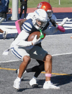 The Pioneer offense made up for the miscue. Benny Lewis, who carried 28 times for 113 yards in the contest while filling in for injured starter Vante’ Hodges, had three chunk runs before Tenta completed an 18-yard pass to Chrys Taylor to get the Heidelberg 5-yard line. Three carries by Jackson-Wilborn later, MC found the end zone again to make it 21-7 with 7:59 to go in the second.