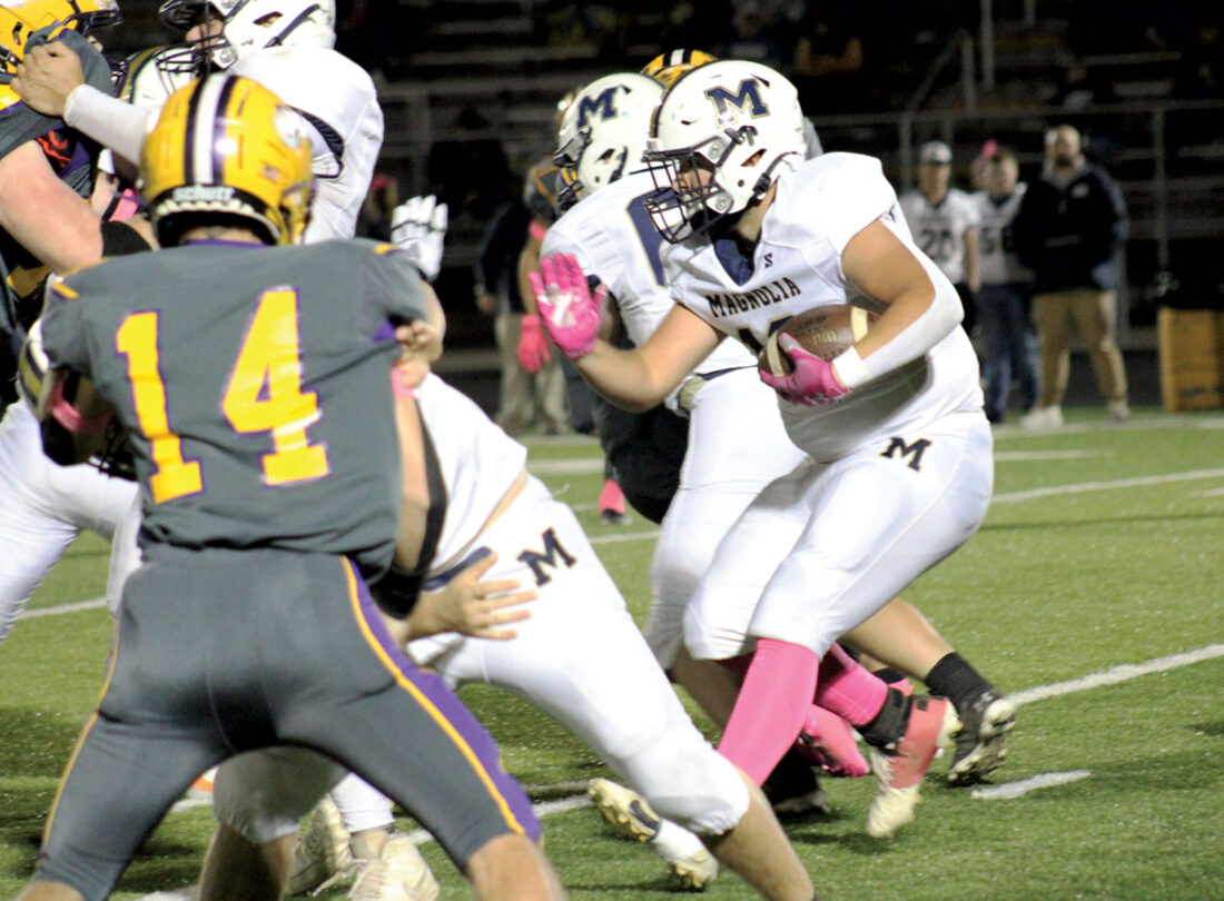 “We had a nice, methodical drive there after halftime, so I was tickled to see us down only 16-14,” Magnolia coach Craig Mason said. “Then you have a couple of explosive plays and a couple guys get hurt.”