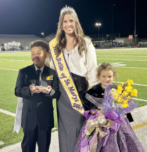 - Callie Powell, last year’s Belle of St. Marys, is pictured with Emerson Capiano, right, and Quentin Satterfield, left, during Friday’s football game against Magnolia at Bill Hanlin Stadium. (Photo by Kerry Patrick)
