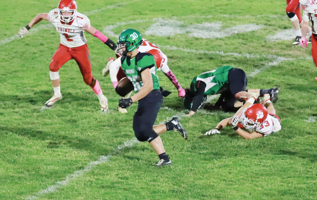 Hayden Jones rushed for 125 yards and three touchdowns while Avery Pottmeyer completed 7-of-9 pass attempts for 177 yards and three touchdowns with Trevin Zimmer, Weston Fairchild and Gavin Hiener catching one apiece.