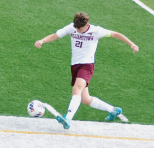 - Williamstown’s Mason Mercer sends the ball down the field against Braxton County during the Eagles’ 6-0 Little Kanawha Conference championship match victory Saturday at Bill Hanlin Stadium in St. Marys. (Photo by Jay W. Bennett)