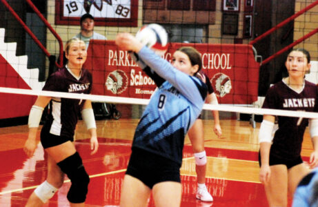 The ‘Jackets pushed ahead 6-1 in set two following a Maggie Frye ace, but PCHS closed it to 6-3 after a Tokodi-Ruth kill with Kylee Maggiacomo at the service line.