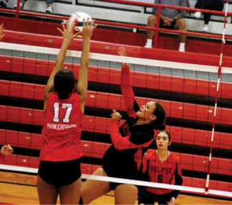 Kennedy Porter had a kill, a block and three consecutive aces to help PHS jump ahead 13-3 versus Belpre, which had leads of 1-0 and 2-1 in set two thanks to downed spikes by Calli Meredith and Khloe Cooper. A Gracie Bills block of Porter squared it at three as the Golden Eagles had an 8-7 cushion following a Lucy Ruble ace, but Chloe Gribble served up one of her own following a BHS attack error and the Big Reds led for good.