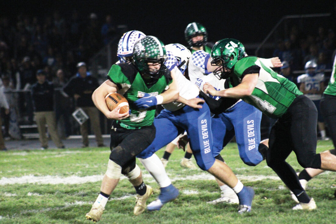 - Waterford’s Hayden Jones gets wrapped up by a Danville defender during Friday’s Ohio Division VII regional semifinal. (Photo by Kerry Patrick)