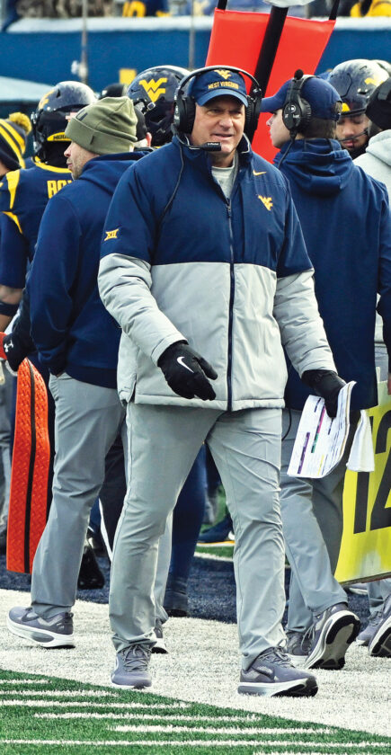 West Virginia head coach Rich Rodriguez patrols the sideline during the Mountaineers’ 49-0 loss to Texas Tech Saturday. (Photo by David Pennock)