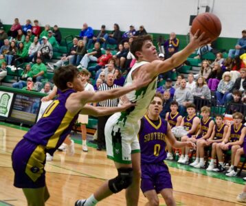 After a series of trading baskets, the margin remained six points when Federal Hocking’s Noah Blake came up with the dagger – a 3-pointer from the corner which put the Lancers in front 42-33 with only two minutes remaining in regulation.