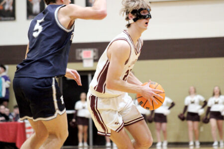 - Williamstown’s Tyler Keiser (23) looks for an open teammate during Wednesday’s game against Ritchie County at Williamstown High School. (Photo by Kerry Patrick)