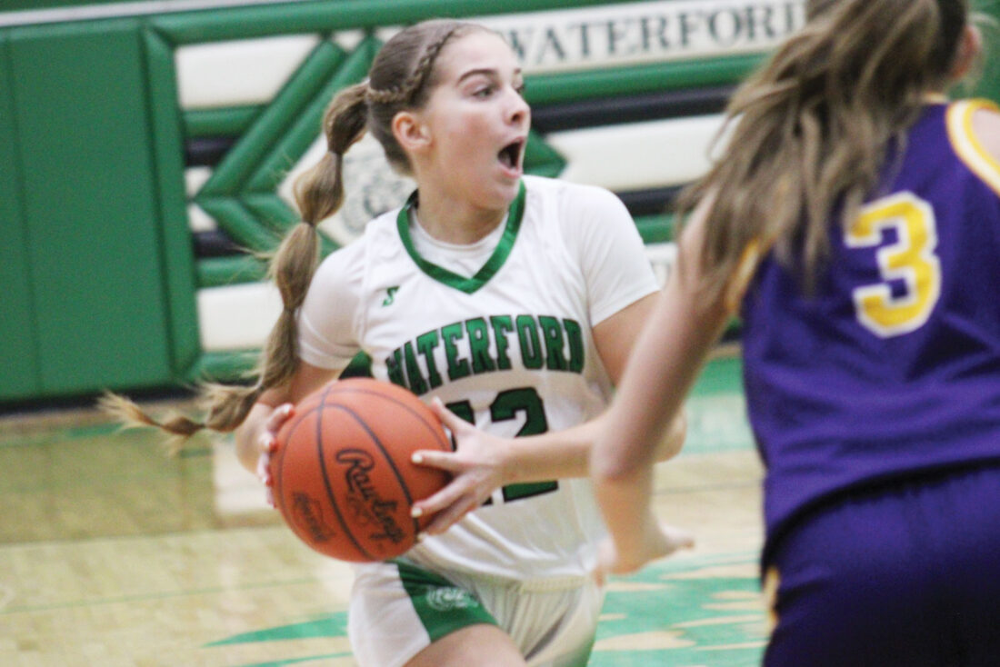 Brynnlee Pottmeyer was the prototypical point guard after dishing out five assists on Waterford’s first six made buckets in the first half. Her fifth and final assist of the game found Ava Hurley flashing to the basket to spark an 8-0 run which gave the Wildcats an 18-11 lead with one minute remaining in the first half.
