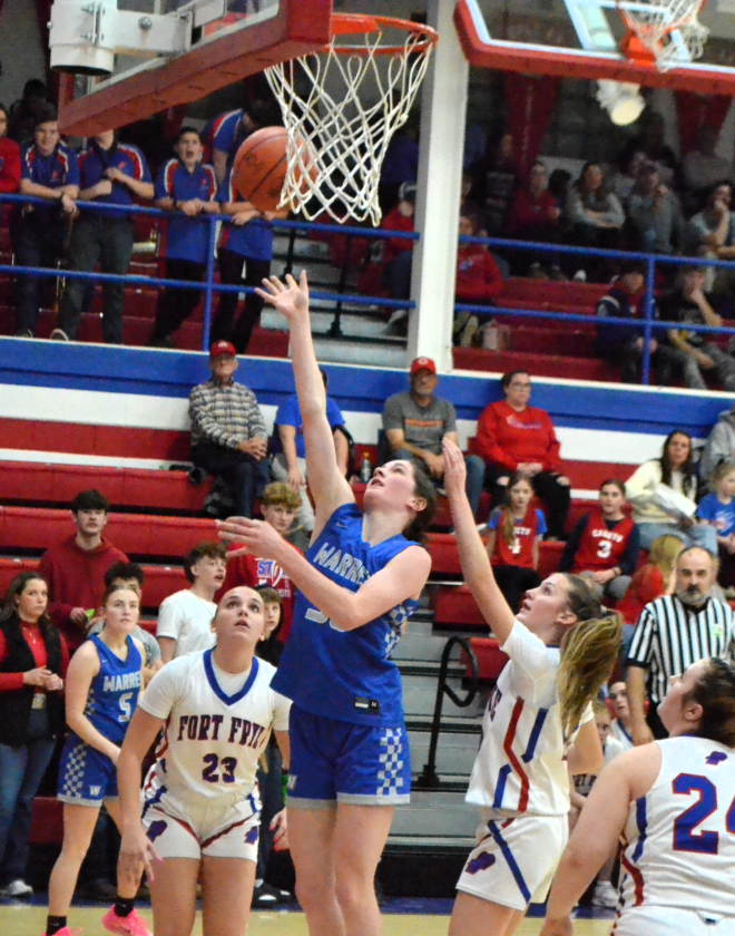 - Warren’s Danica Gates goes up for a basket during Wednesday’s game against Fort Frye at Dan Liedtke Court. (Photo by Mike Morrison)