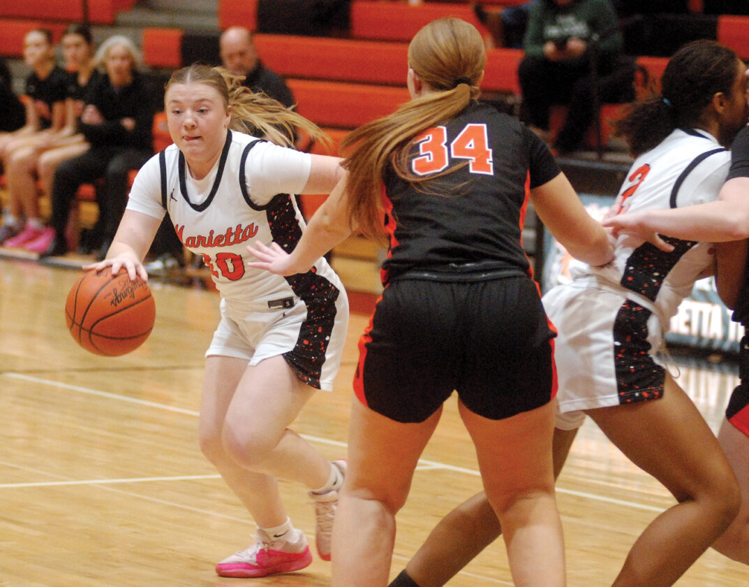 Evans’ 3-ball in OT gave ACHS the advantage. Abbie Leist later hit a pair of free throws with 46 seconds remaining to make it 50-47. Marietta had a chance to tie it, but Hayleigh Chidester’s 3-point attempt was off the mark at the buzzer.