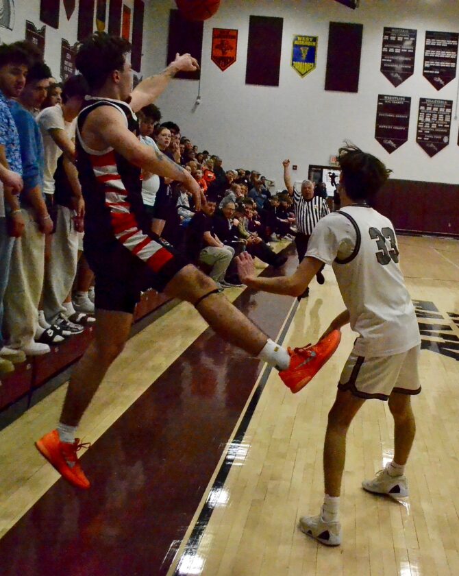 The Tigers’ leading scorer had to leave the game for several minutes and be attended to on the MHS sidelines as he mirrored a prize fighter who had just taken a direct blow to the eye.