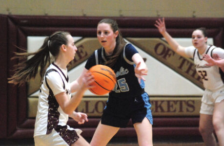 Bunch’s second trifecta of the half had the Crusaderettes doubled up at 18-9 with 3:18 left in the second, but PCHS closed to within four at 20-16 following deuces by Macy Singer and Tokodi-Ruth along with a 3 from Starkey.