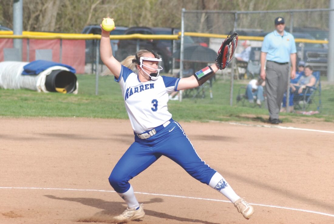 - Warren’s Gracie Adams worked four innings with five strikeouts to earn the mound triumph during the Warriors’ 8-6 victory Tuesday evening versus host Parkersburg at Larry Allen Field. (Photo by Jay W. Bennett)