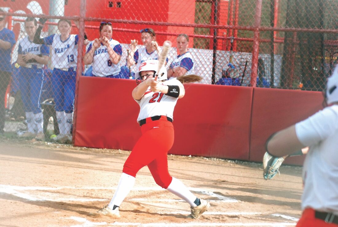 - Parkersburg’s Brynn Frye belted a two-run homer during the Big Reds’ 8-6 setback versus Warren on Tuesday evening at Larry Allen Field. (Photo by Jay W. Bennett)