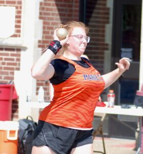 - Marietta’s Darby Cartmell placed fifth in the shot put during Saturday’s Russ Parsons Invitational at Parkersburg High School. (Photo by Jay W. Bennett)