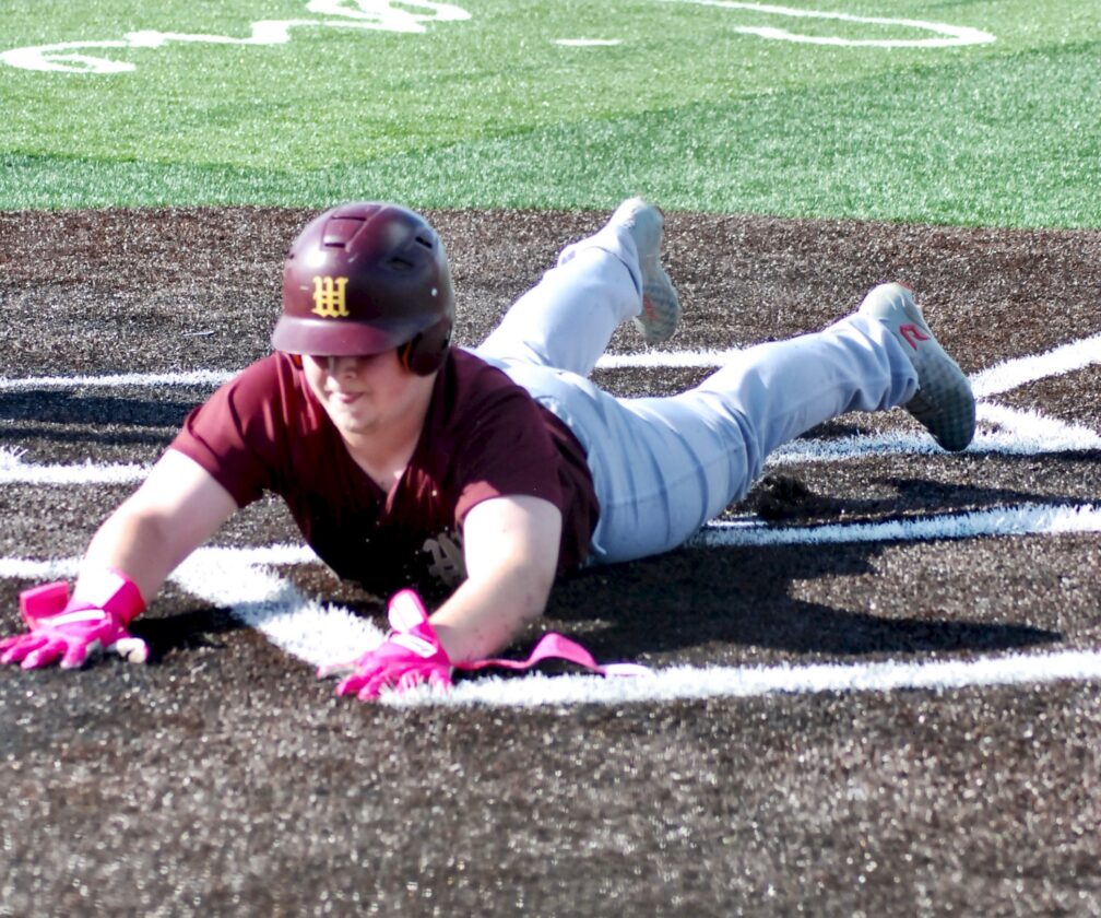 - Williamstown’s Tyler Coleman dives safely into home during the second inning of the Yellowjackets’ 3-2 Little Kanawha Conference semifinal victory versus Gilmer County on Tuesday at Bill Coiner Field. (Photo by Jay W. Bennett)
