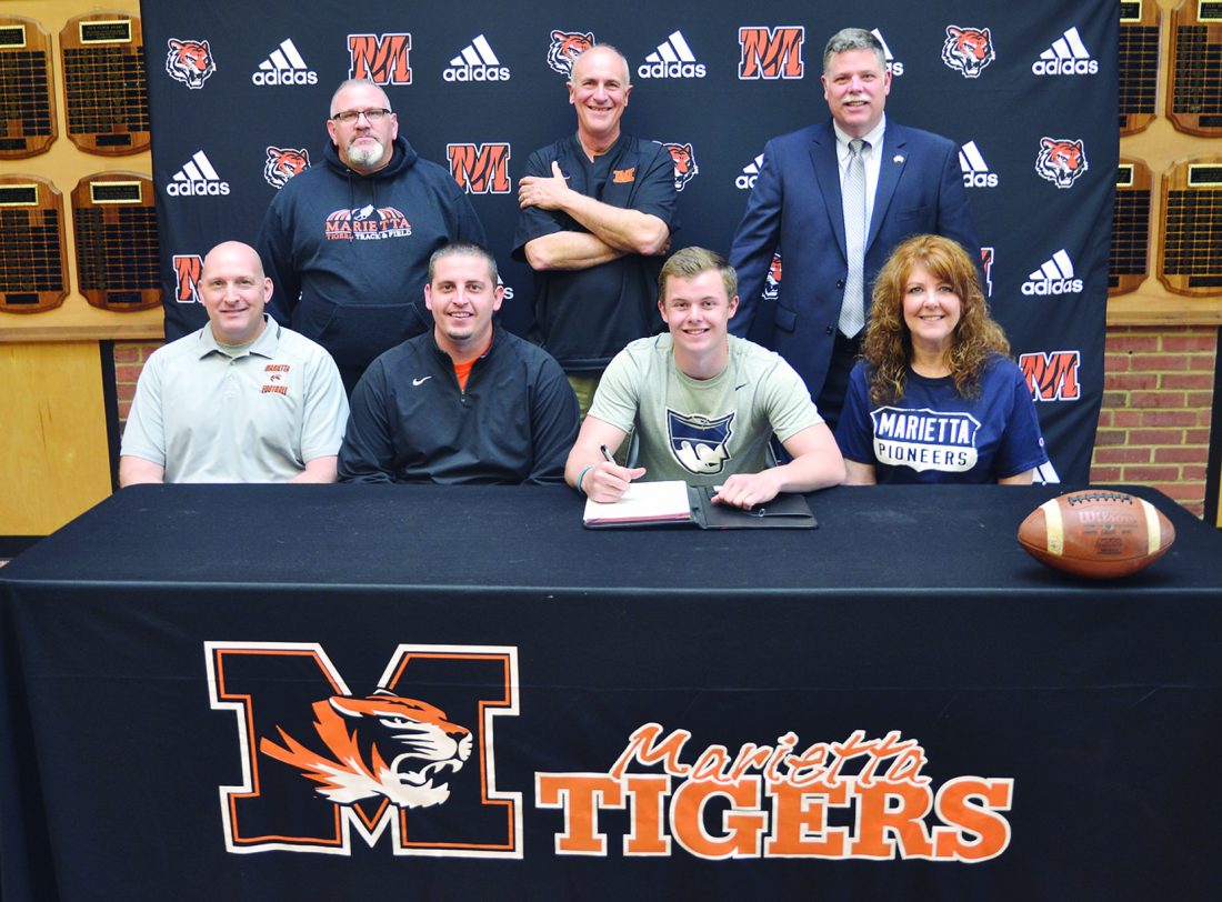 This past Monday afternoon in the Sutton Gym lobby at Marietta High, the 6-foot-1, 190-pound senior announced his intentions of continuing his education and playing football at Marietta College after spring graduation.