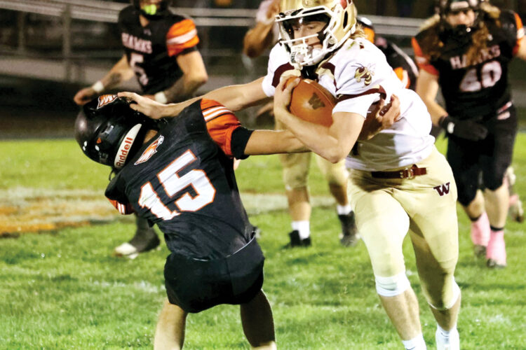 BEVERLY — Fort Frye’s amazing streak of scoreless defensive quarters came to an end Friday night against the visiting Warren Warriors but their more important streak of winning games continued as they rolled to a 46-8 win.