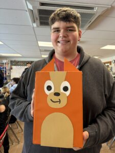 Photo provided Jackson Middle School seventh-grader Connor Smith shows his Bingo, a character from the show Bluey, inspired Valentine's Day box to give to younger kids at Olivia and Friends Childhood and Development Center.
